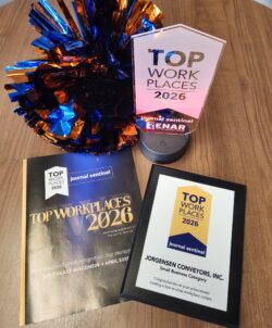 Jorgensen has received recognition as a  Top Workplace. Through employee feedback and continuous improvement, we are able to offer meaningful benefits and a positive work environment for our employee-owners.